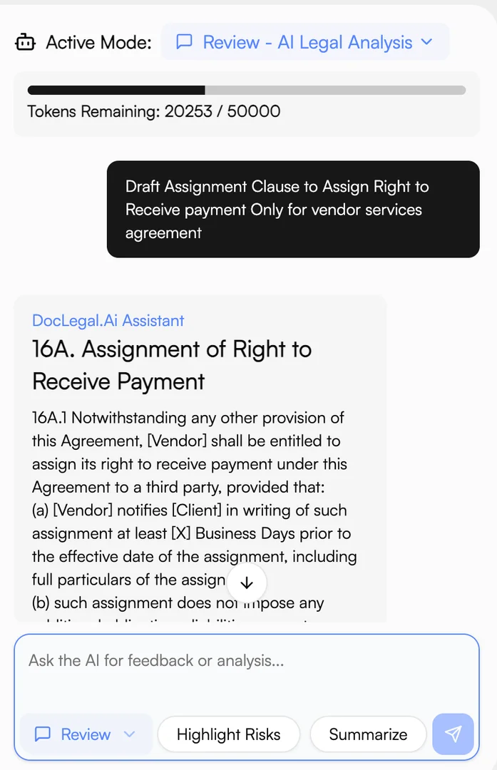 You may use the appropriate Assignment Clause generated by DocLegal.ai to reflect your preferred position clearly and precisely.